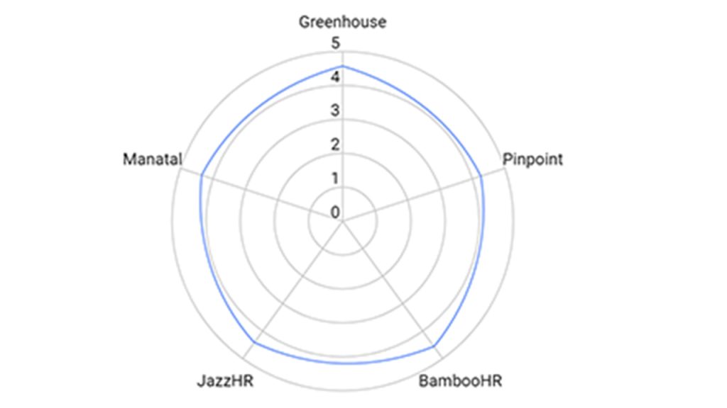 سیستم‌های ATS خارجی اکثرا ویژگی‌های اصلی یک سیستم ATS خوب را دارند، اما برخی از این ویژگی‌ها برای ایرانی‌ها به دلیل وجود یک‌سری مشکلات قابل استفاده نیستند. به هر صورت، داشتن اطلاعات جهانی درباره‌ی ATS خالی از لطف نیست و در ادامه تلاش کردیم برخی از نام‌آشناهای دنیای ATS را برای شما معرفی کنیم. در نمودار زیر می‌توانید امتیاز میانگین این سیستم‌های ATS را با توجه به نظرات در سایت‌های G2 و Capterra، ببینید؛ طبیعتا می‌توانید متوجه شوید که تلاش کردیم بهترین‌ها را براتان گلچین کنیم. (امتیازها بین 0 تا 5 است).